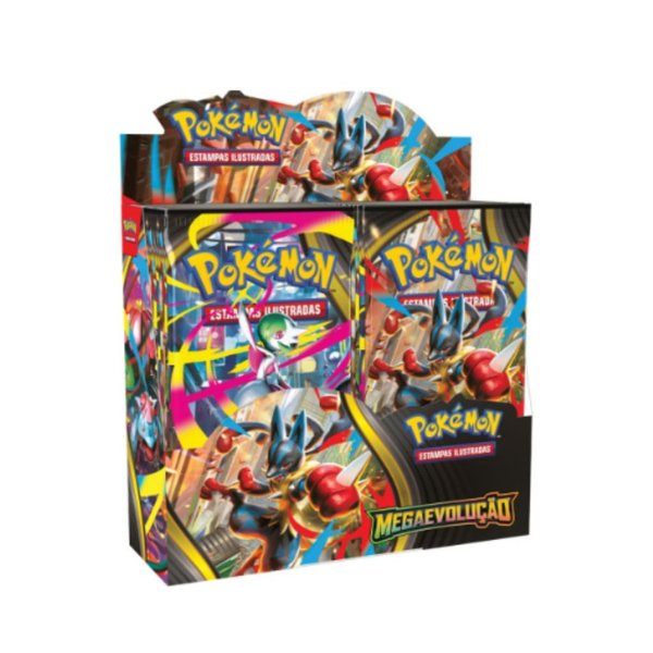 Contém 36 pacotes com 6 cartas em cada de Megaevolução!