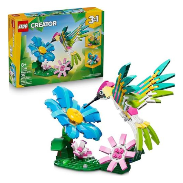 Este impressionante conjunto de figuras de animais oferece às crianças 3 opções de construção diferentes com o mesmo conjunto de peças. Elas podem optar por construir um beija-flor articulado em uma pose de voo dinâmica sobre um suporte com lindas flores. Em seguida, podem reconstruí-lo em uma borboleta sobre um suporte com flores, ou em um peixe tropical sobre um suporte com plantas subaquáticas.