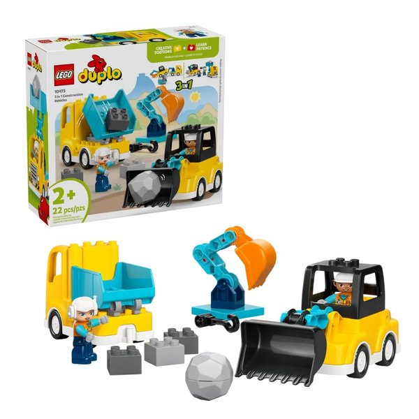 1 CONJUNTO, 6 VEÍCULOS DE BRINQUEDO – As peças deste conjunto LEGO® DUPLO® para crianças pequenas se encaixam para construir 2 caminhões de reboque com ganchos diferentes, uma carregadeira, uma plataforma elevatória, um caminhão basculante ou uma escavadeira de brinquedo com braço flexível.