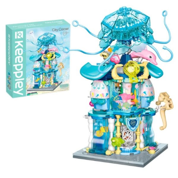 Com este conjunto de blocos, você pode montar uma fascinante loja de aquários, repleta de cores e detalhes que estimulam a criatividade e a imaginação.