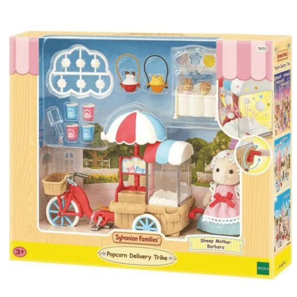 O Triciclo Delivery De Pipoca Sylvanian Families Epoch 5653 é perfeito para crianças a partir de 3 anos de idade.
